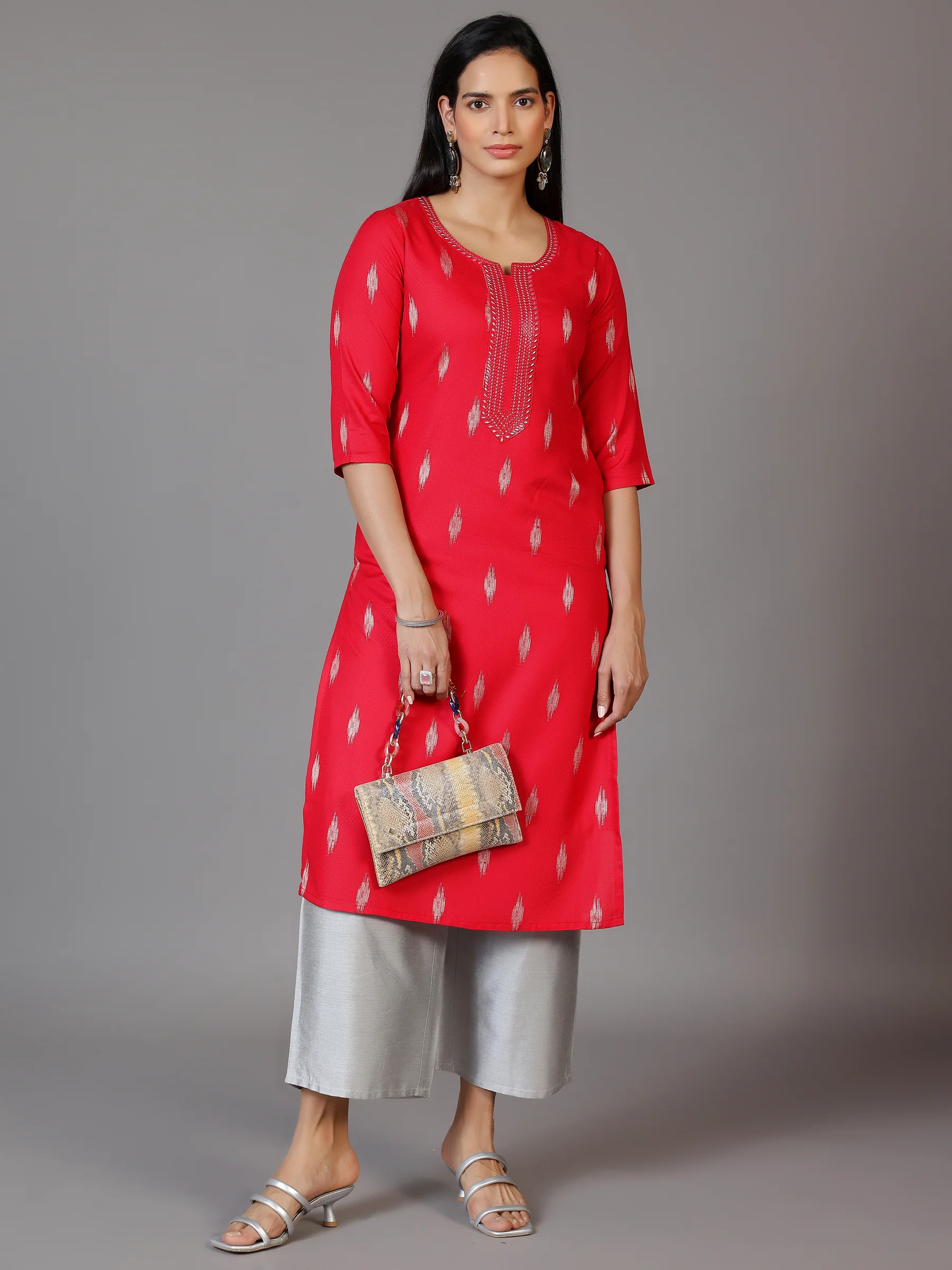Pink Woven Design Rayon Straight Kurta