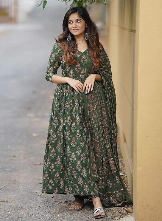Women Printed Flared A-Line Kurta with Pant and Dupatta Suit Set | Kurta Set